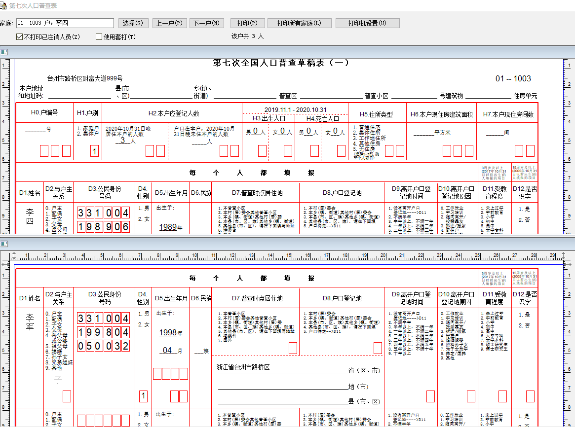 文達(dá)社區(qū)管理軟件2020版本提供人口普查表短表打印功能,可以將家庭地址、姓名、身份證號(hào)、人數(shù)等信息直接打印到普查表上,方便普查時(shí)檢查比對(duì), 支持套打和帶格式批量打印,也支持多種格式打印。有需要的客戶請(qǐng)聯(lián)系QQ:879834178 或致電:0576-82338707小朱
