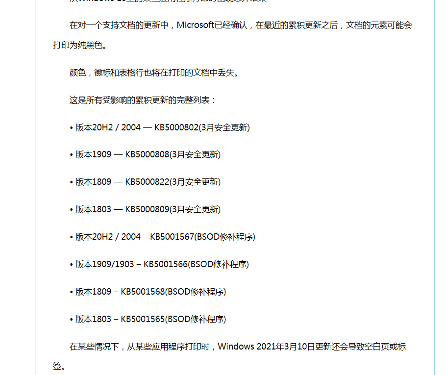 近期有用戶反映庫(kù)管軟件、人口軟件部分報(bào)表在 WINDOWS 10 操作系統(tǒng)下無(wú)法打印出表格線,只有報(bào)表內(nèi)容。已知這是 WINDOWS 操作系統(tǒng)補(bǔ)丁更新導(dǎo)致的問(wèn)題,以下補(bǔ)丁受影響: